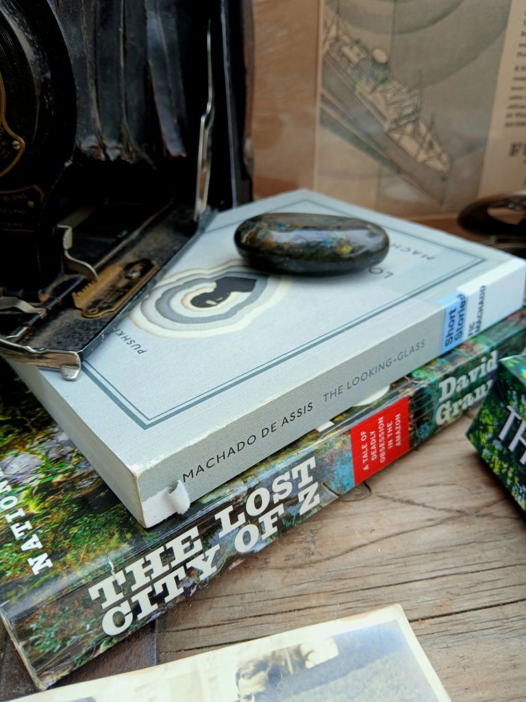 For books most are for research, but others were for vibes or setting. Not pictured is Into the Amazon: The Life of Cândido Rondon by Larry Rohter, which I have in ebook.